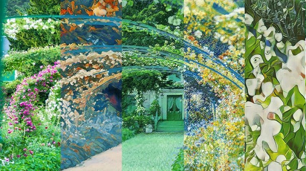 《日本桥》《睡莲》这些大家熟悉的莫奈名画都取景于画家的私家花园。如果梵高、毕加索等画家也来到莫奈家做客,这些个给予莫奈无限灵感的园子,是否也能激发起另几位大师的创作欲望?在上海交通大学文创学院举办的国内首次人工智能艺术展上,记者见到了梵高“画”的水园,毕加索“画”的诺曼底花园,还有莫奈“画”的,既有大片睡莲,又有垂柳、小桥的水园大全景,甚至还有几位大师一同“合作”的花园油画。