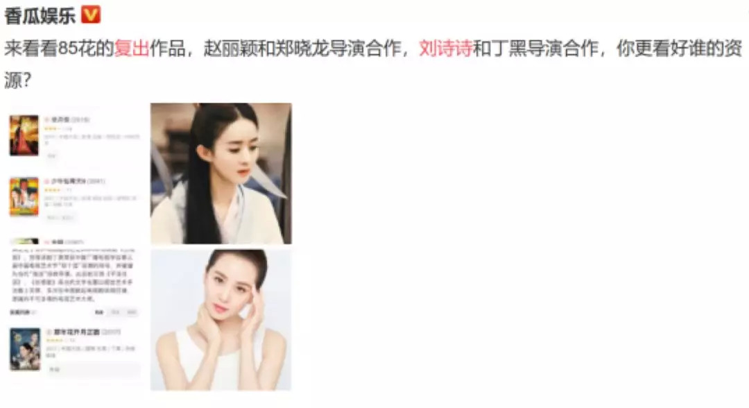 刘诗诗微博晒娃,随后传复出要拍新剧《亲爱的自己》;赵丽颖产后高调复工,先传出要拍古装大女主IP剧《有匪》,随后又相约名导郑晓龙,说是要拍现代励志女性剧;杨幂这边就不用说了,嘉行自制的《许你暖暖的晨光》和此前通过腾讯视频大会官宣过的九州IP《斛珠夫人》,目前看来都不算“好饼”。粉丝为其事业操心到秃头,集体换头像抵制新戏、手撕嘉行。