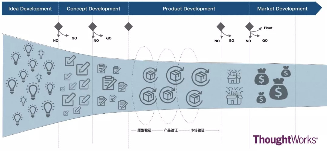 创新的顶层设计决定创新的环境,是创新工作能够良性开展的大前提。创新的环境是,提供员工宽松的创新空间、允许试错的文化,形成创新自下而上的驱动,自上而下的支持。创新是一个概率学的东西,所以我们要的不是某一个团队或组织负责去做创新产品,而是发动全员提供创新点子,例如创新大赛、创新马拉松等。创新也不是短时间内就能够给银行带来真正的绩效的提升,更多的是生态布局、圈住用户,所以我们也要给创新足够的空间与支持,少干涉创新过程,不要在前期过度的强调利润,多鼓励创新,多支持创新。现在在银行中常见的做法是成立内部创新孵化器,通过全员举手收集点子,然后评选选出高潜点子,通过内部的独立孵化给与资源支持,孵化点子,当然过程中会有按照季度的退出机制,发现行不通就立刻转向或退出,快速试错。