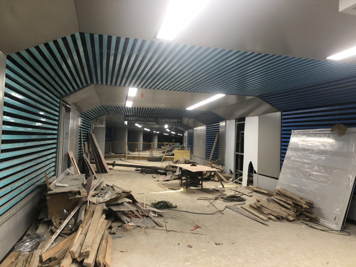 目前光谷综合体地下部分尚未完工,对着世界城光谷步行街的J口开放了地下一层一小部分,顺着入口往里走,左边仍在施工,右边摄像头安装完毕,标识清楚,只待最后通畅。