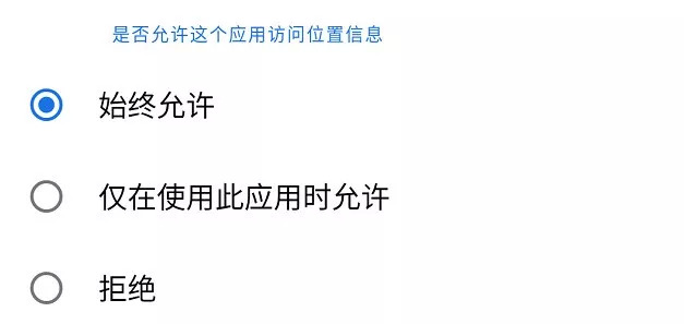 另外,除了手机在网上的「虚拟行踪」,Android 10 也限制了 App 获取用户的「 真实行踪 」:终于可以将 App 的位置权限设置为「 仅在使用此应用时允许 」了。
