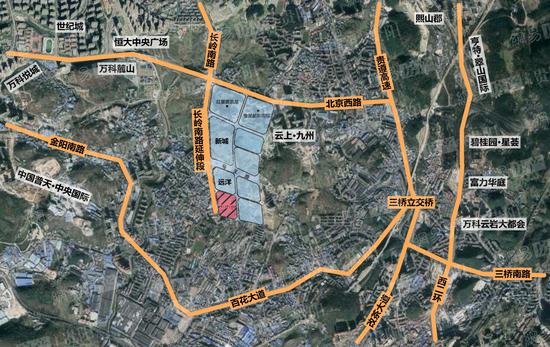 该地块区所处板块与观山湖区接壤,周边配套丰富,路网也正在逐步完善中,且与在建的地铁2号线马王庙站直线距离仅为500米左右,区位优势明显。附近有红星美凯龙、金龙星岛国际、新城玺樾台、万科麓山、恒大中央广场等项目,毗邻贵阳地铁2号线马王庙站。