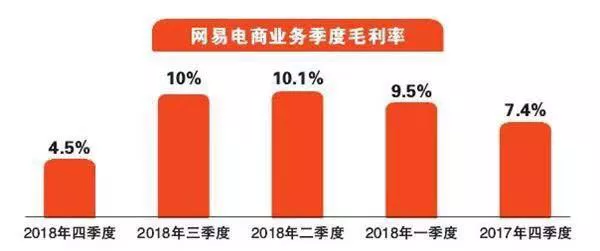 2018年,网易市值一度跌去三分之一,2018年Q4及全年财报显示,网易电商业务全年增速从156.9%放缓至64.82%,电商业务第四季度的毛利率低至4.5%,对比2018年第四季度其在线游戏服务的毛利率为62.8%。2019年网易Q2财报显示,电商业务增速经一步下降为20.2%。