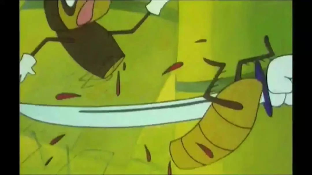 第4集《吃丈夫的螳螂》里,战斗情节基本是一场“大屠杀”。螳螂们挥舞着长剑,刺、砍、剁、劈。