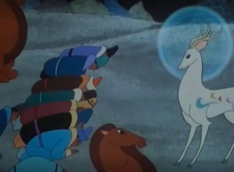 这件事被王国里最有权势的女人——王后听到,她贪婪、自私,希望把九色鹿的皮扒下来做衣服。