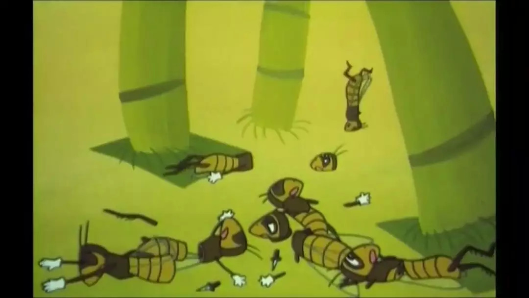 蝗虫有的被腰斩,有的被砍头,有的被刺穿,镜头不但没有回避这些,还加了鲜血,甚至有大特写。