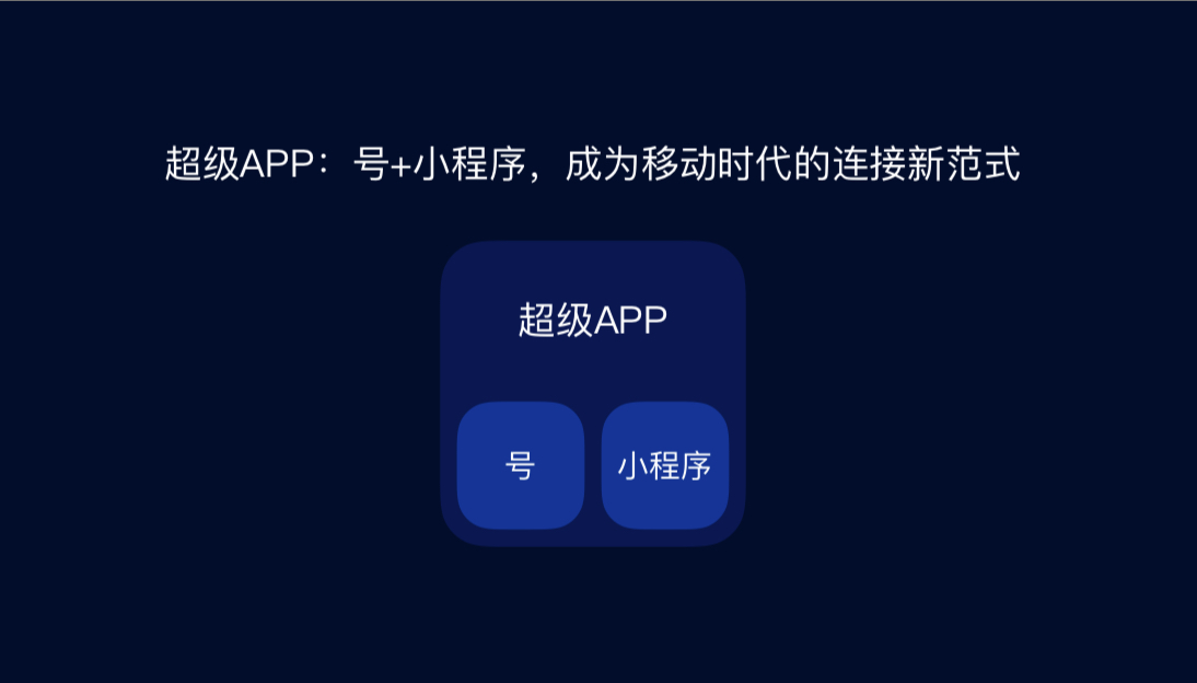 “互联网发展格局是超级APP+号和小程序生态,几乎所有超级APP都在向号和小程序形态迈进,今天这种形态已经成为移动时代代表连接的新范式。”