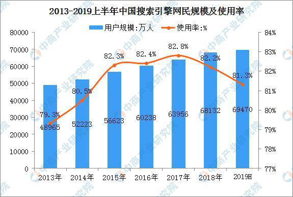 是不是“瘦死的骆驼比马大”?答案不是。搜索引擎市场的用户大盘在增加。日前,中国互联网络信息中心(CNNIC)完成第44次《中国互联网络发展状况统计报告》,报告显示,截至2019年6月,中国网民规模达8.54亿,上半年共计新增网民2598万人,其中搜索引擎用户规模达6.95亿,较2018年底增长1338万,占网民整体的81.3%,2019年上半年,搜索引擎广告业务收入保持增长。