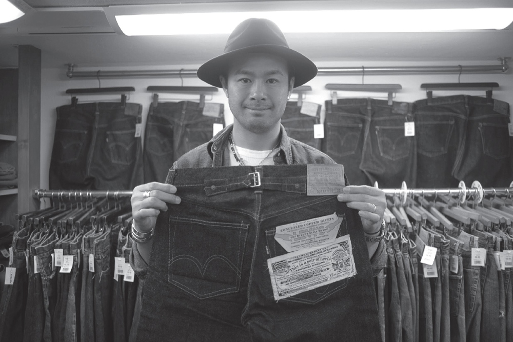 大坪洋介保守估计,稀有的美国服饰,尤其是牛仔裤和工作服类,有三分之二都落入日本人手中。特别是,“原宿商店Berberjin的地下室绝对是全世界最重要的牛仔裤古着集中地”。在那个狭小的地下房间里,Berberjin若无其事地陈列出各个年代的Levi’s。有些皮革标签都快腐烂的1930年代牛仔裤,要价在一万美元上下。此外,千叶县有一名收藏家拥有3000条牛仔裤。“香蕉船”在带动崇拜旧Levi’s的风潮之后三十年,店内玻璃柜里仍然摆着数十条状态完好的1966 年款Levi’s牛仔裤,目前每条要价20万日元。