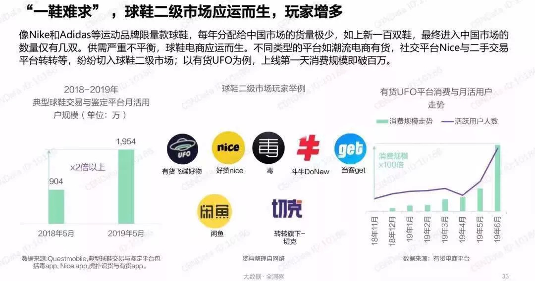 球鞋二级市场的巨大商业潜力,吸引了大量的国内外玩家入局。有货UFO飞碟好物,是YOHO!集团旗下球鞋二级交易平台,借助有货平台已有的渠道和流量,在上线第一天成交额即突破100万人民币,此后的交易规模和购买人数每月均高速增长,跨品类交易人数超过50%。