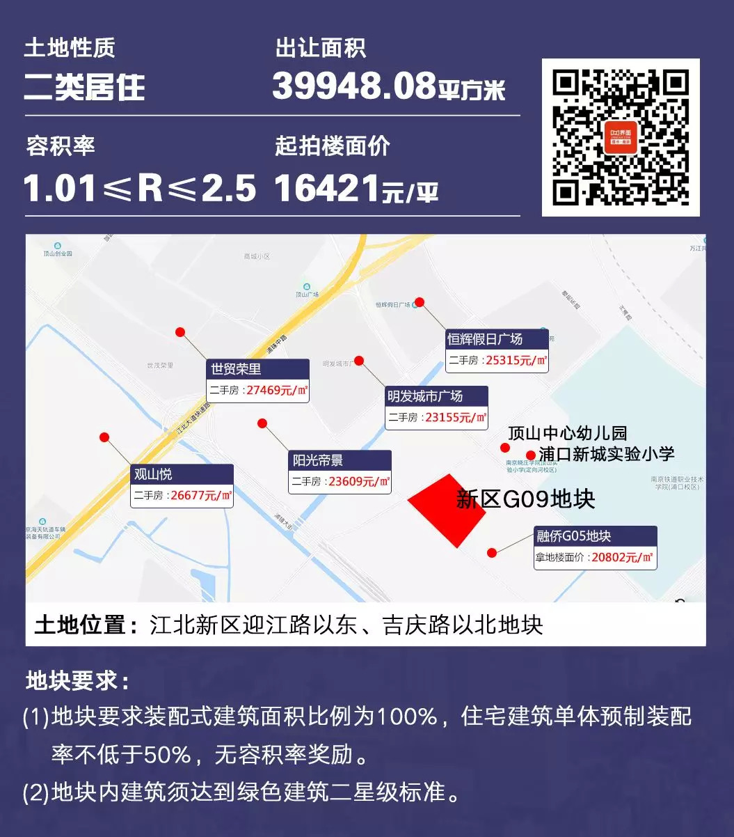 地处江北新区直管区,较靠近江北核心区,紧邻去年2月出让的租赁地NO.2018G05地块和今年6月出让的融侨G05地块。