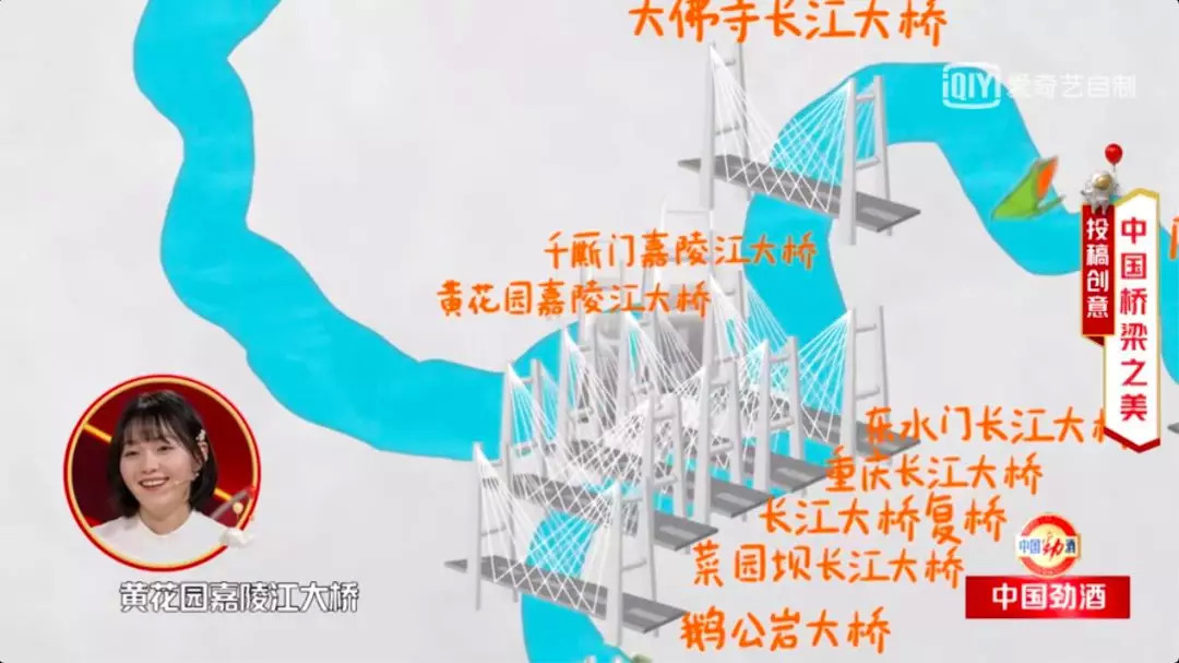 又如节目中另一个年轻人“疯疯童学”,展现重庆桥梁建设成果时,使用了大量弹幕、贴片特效、花字特效、动画建模等在如今短视频中会用到的新手段。