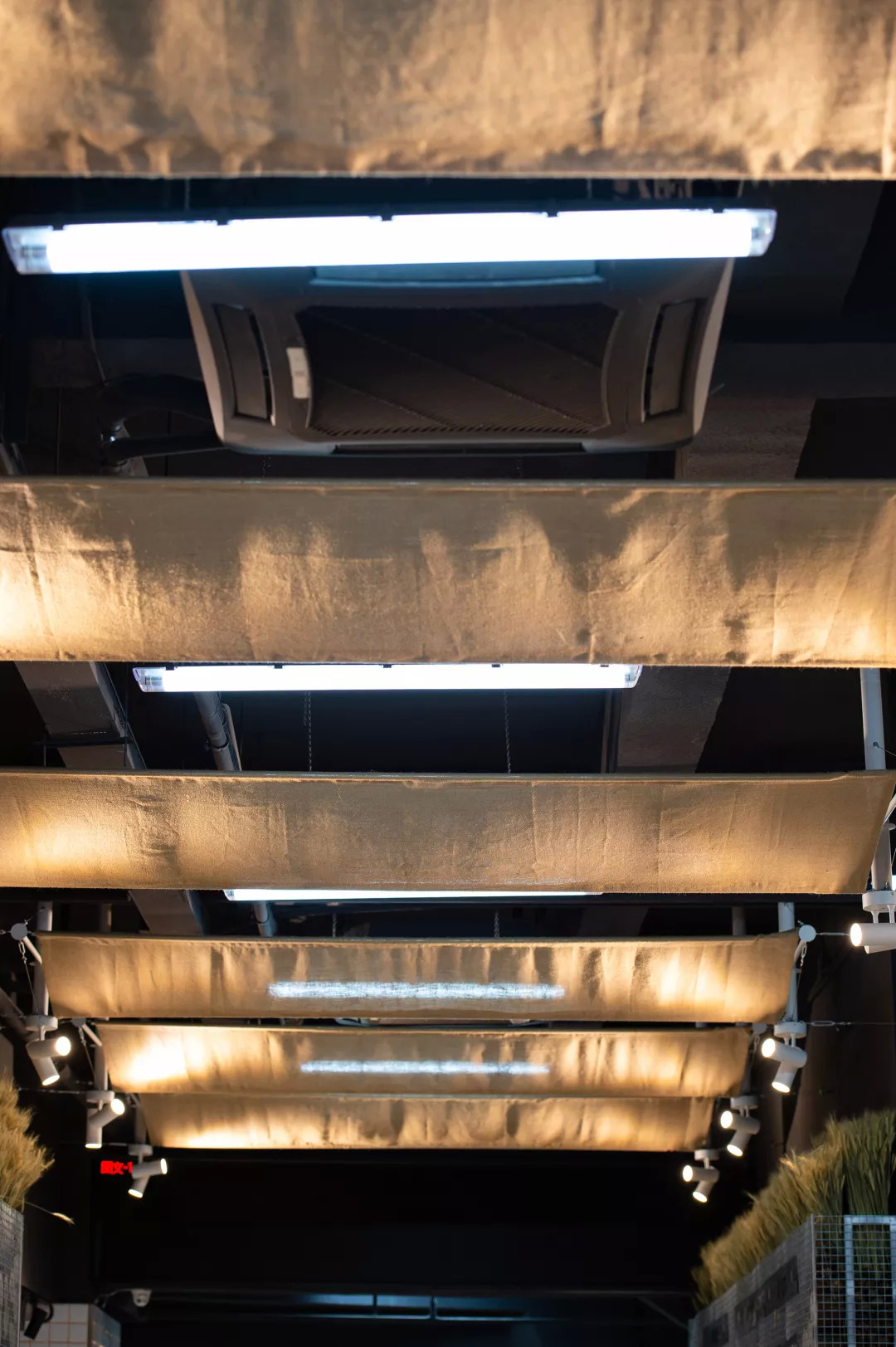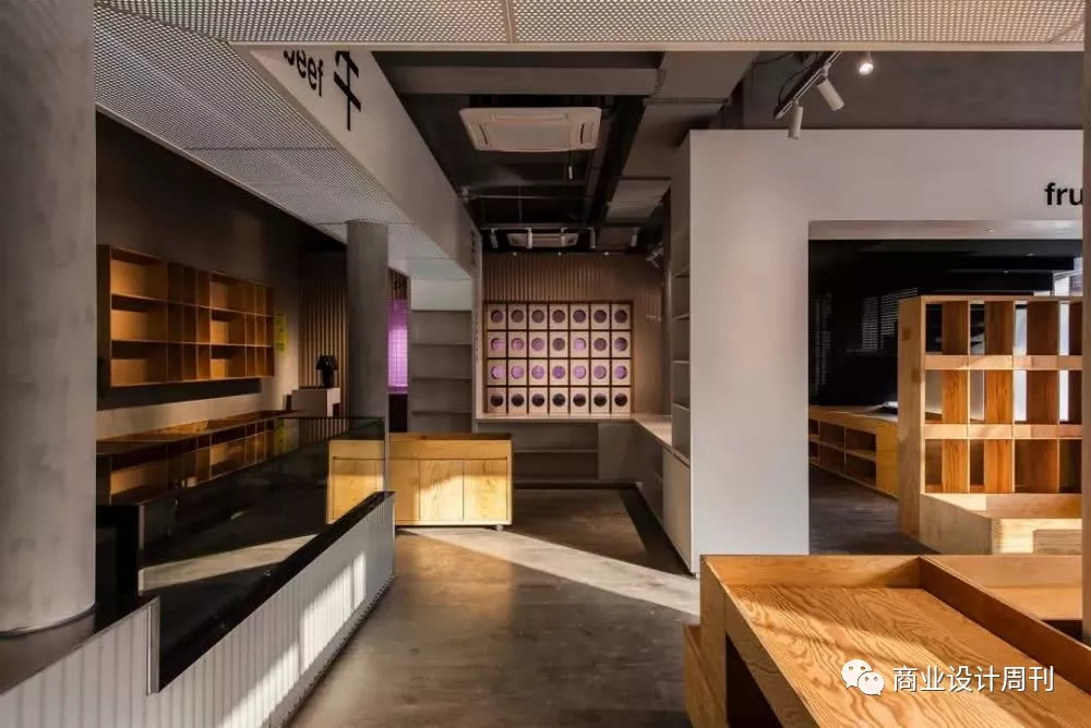 用节点思维解决实际内店招笨重的问题。通常的店招都是用石膏板下挂,这样做即浪费材料,空间又十分笨重。而在本次改造中,让空间变得轻盈有序,招牌变得可拆卸替换,灯光更有秩序。