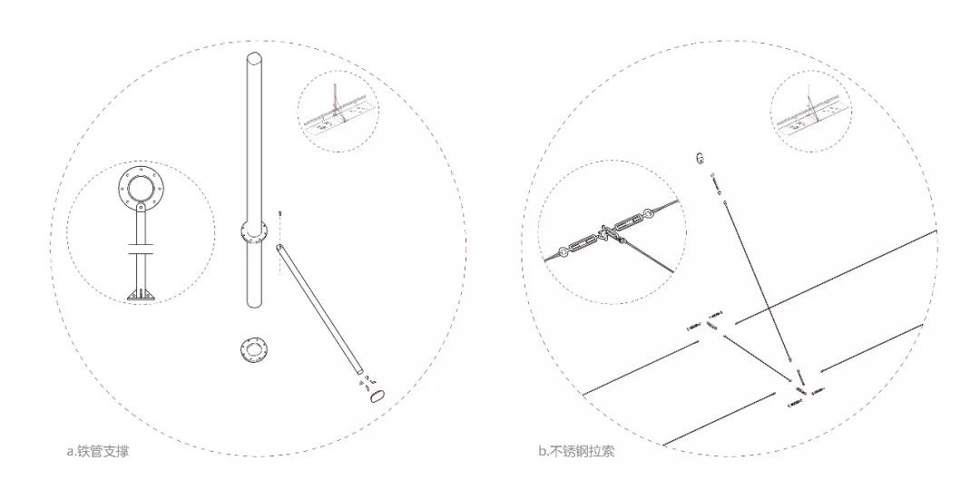在每跨铺位的平面组织形式里,创造了一种帐篷的“轻盈”, “麻布”作为主布面材料,从自身属性表达一种自然肌理,将 “自然乡野”的气质传达给空间。而带有审美的解决问题,才是整个设计最本质的表达。