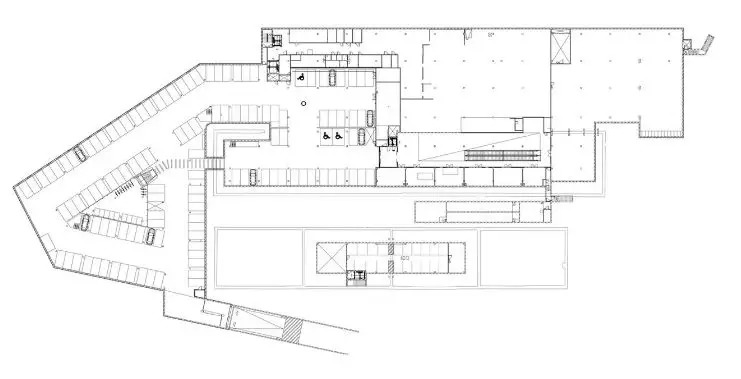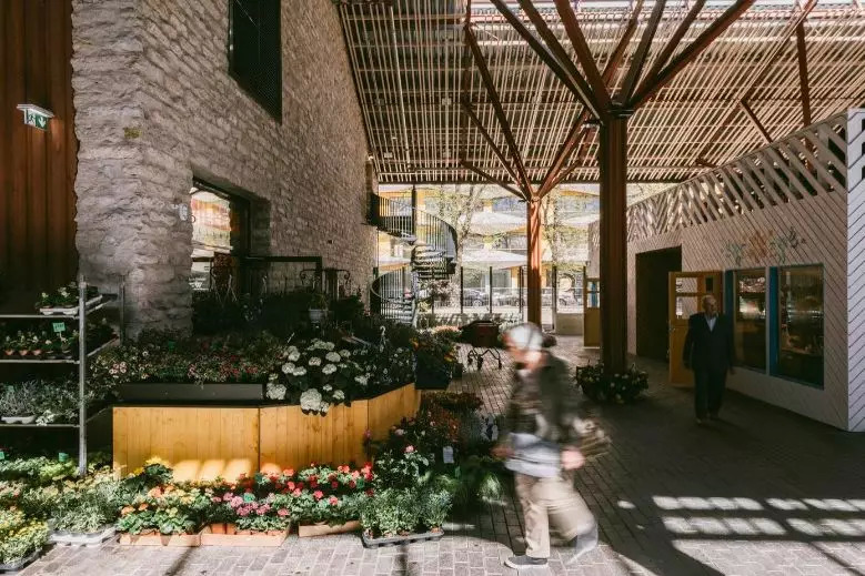 市场内部的改造建筑中依据三层既有平面和平面之间的空间进行布局。屋顶的前部被保留下来用于组织开放的户外市场,老市场在1993-2016年间就在此处设立了室外市场,人们自然而言就会觉得它就应该设在那里。室外市场的后面是一排排的小木棚,用于诸如面包、糖果、香料等小型商品买卖活动。