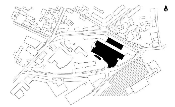 主要的市场建筑体量设计于2013年,并于2015年正式完工。这栋建筑体量代表了“食品生产农场”,市场由农舍的形式发展而来,每个单元互相融合,并按照顺序形成了一个整体。建筑体量的外墙是半透明的设计,这使得光线可以进入建筑体量的内部,并使得建筑体量在晚上可以发光。