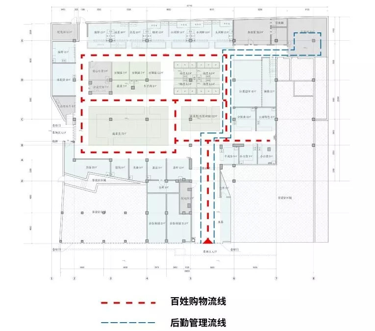 (▲改造后菜场平面布置图,疏散动线,空间更加流畅。)