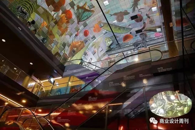 同时,马尔默市场内部有意保持简单,为了凸显出食品才是市场的主角,设计师选择黑色作为主色调,大面积运用在了市场内部,天花板、各种建筑结构、指示牌等。缤纷多彩的食物蔬果与黑色搭配显得更加新鲜诱人!