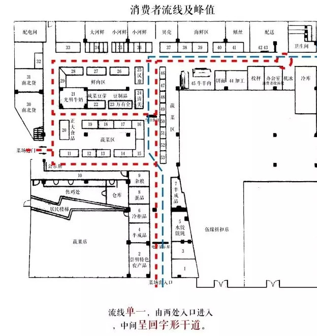 菜市场的运营情况受到管理手段和其物理布局的影响,菜市场的布局设计应当满足以下几点要求:
