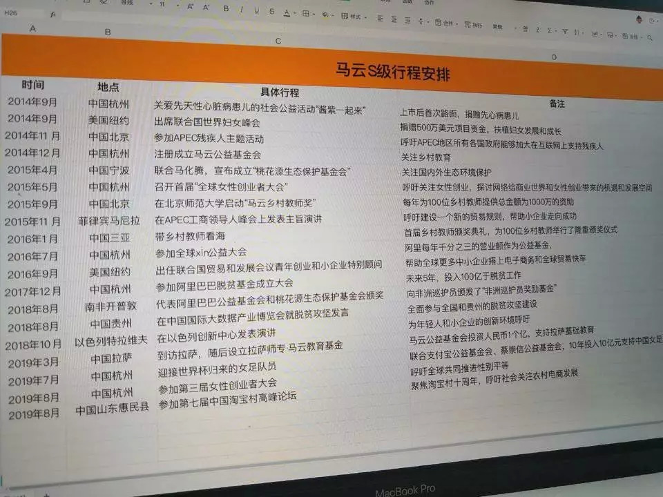 近日网上就曝光了马云的行程单,其中有资助乡村教师,带着乡村教师们去了三亚、海南看海,现场跟孩子们看了视频;还去了非洲颁发巡护员奖励基金;回国也闲不下来,参加了脱贫基金大会、女性创业者大会。