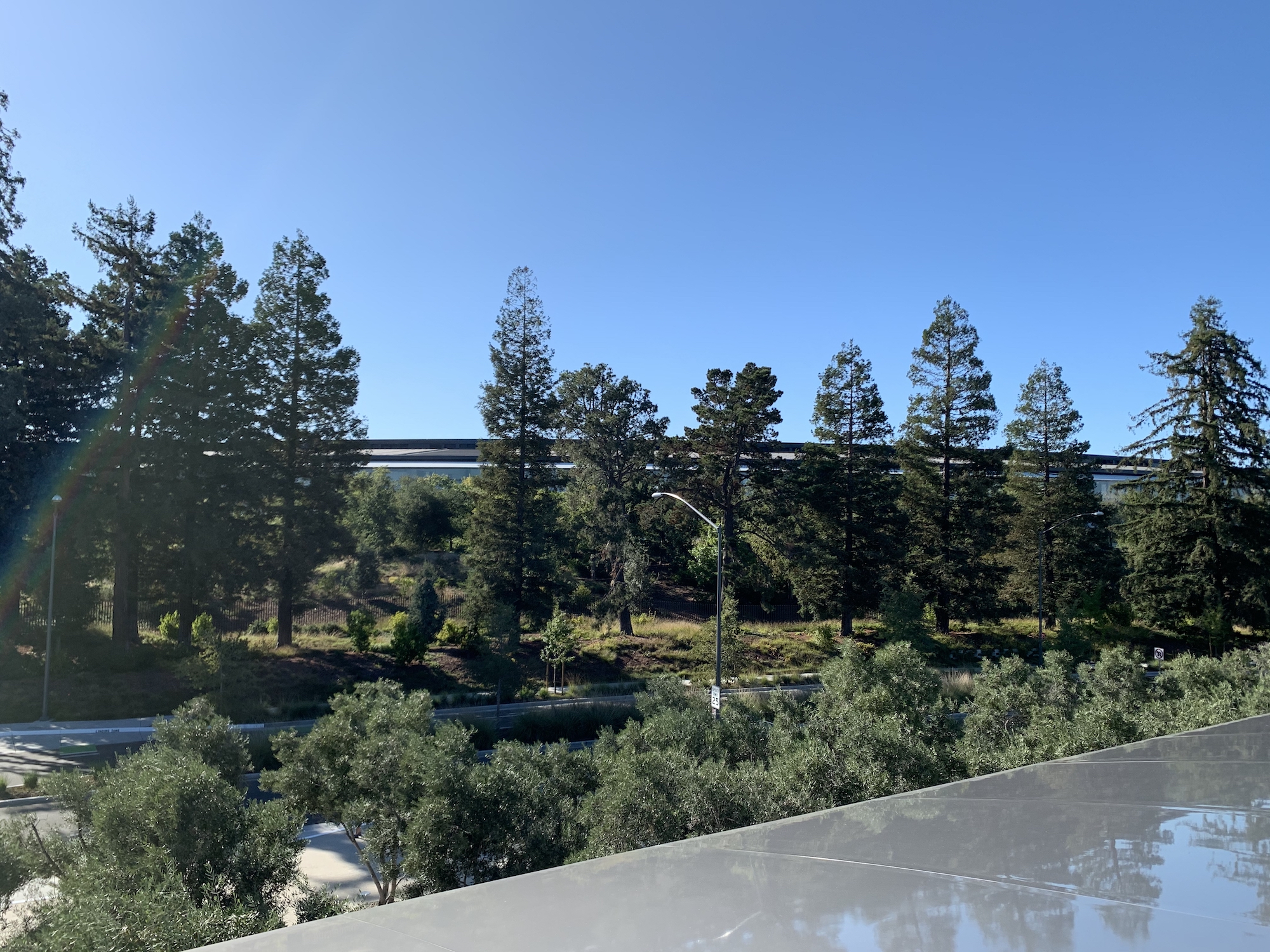 觉得还不够?那就顺势爬上二楼天台,整个Apple Park的全貌就直接映入眼帘,让您一饱眼福。