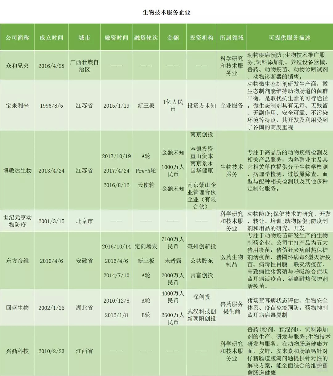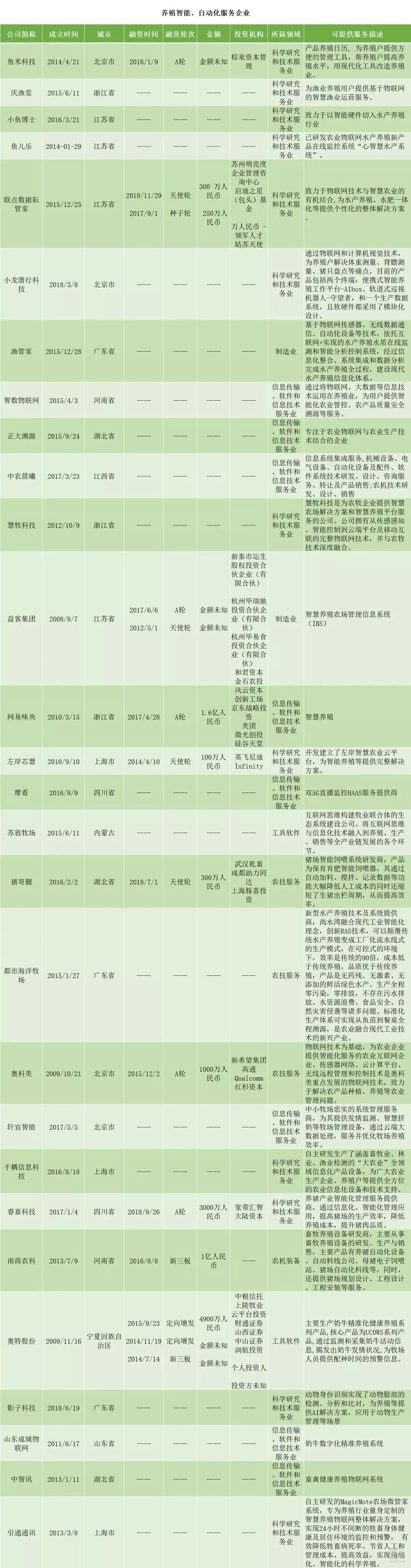 一共是三个方向:养殖废料、生态环境改善服务类;养殖智能、自动化服务类;生物技术类。下面请看详细企业名单: