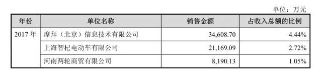 值得一提的是,摩拜单车成为2017年爱玛科技的第一大客户,贡献了3.46亿元销售金额,占全年营业收入的4.44%。