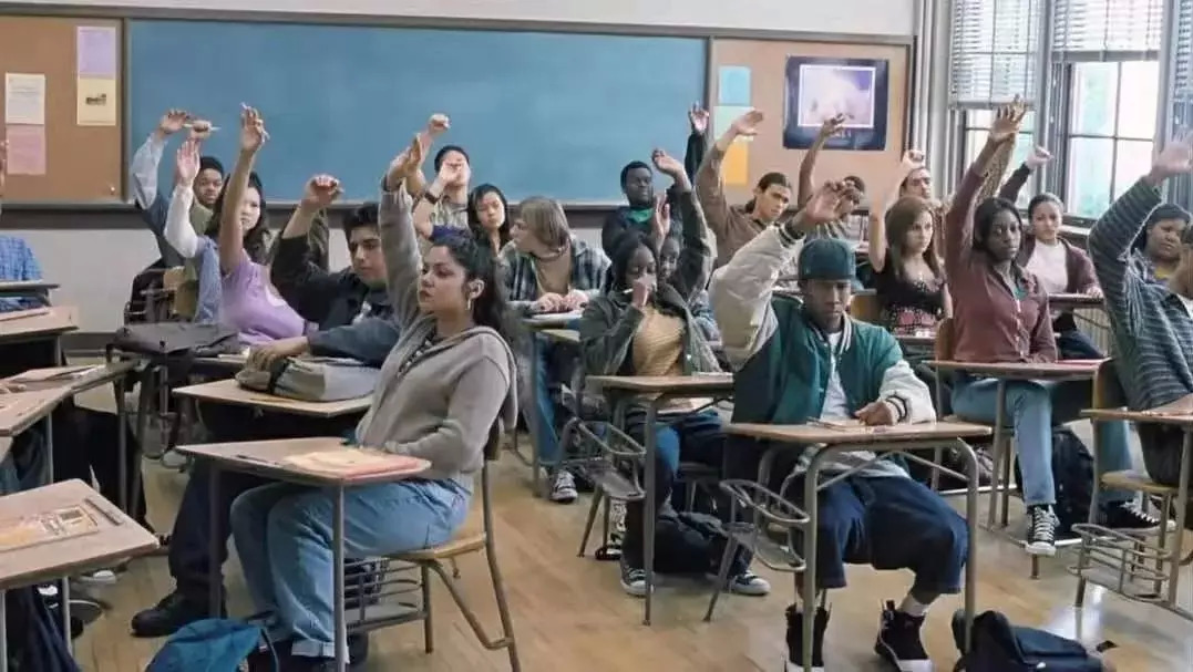 作为一名新老师,艾琳能敏锐地感受到这些孩子之间存在着非常大的敌意,甚至因为自己是白人,学生们对她也有莫名的仇恨。