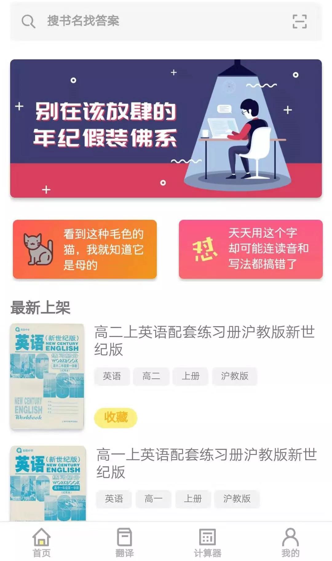 在一款名为“作业答案”的学习类APP上,在最上方的核心展示区写着“别在该放肆的年纪假装佛系”,点开后发现是一个公众号的推送广告,公众号的内容和学习并无关系。
