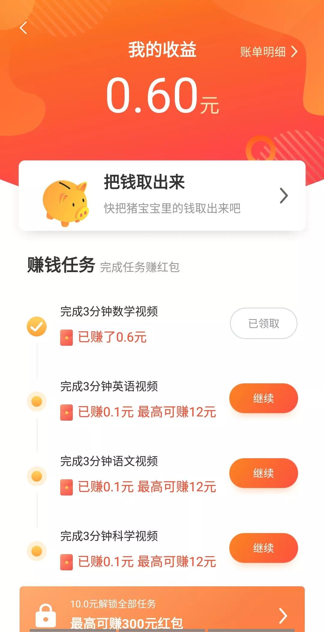 不仅如此,桃李在线(ID:taolionline)注意到,作业大师APP内还设置了看课程视频领红包的模式。学生在观看老师录制好的教学视频时,右侧进度条末尾会有领取红包图标的提示,每隔几分钟每次可领取0.1元,这样极容易造成学生注意力的分散。在学习之后还会设置练习题,而每答错一题,收益会被扣掉0.1元。另外,收益可通过微信、QQ钱包提取出来,非会员每天只能提现0.3元,会员可一次提取1元,但需要先充值10元。