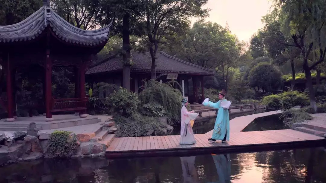 桨声“哗哗”,划过课植园的荷花池、九曲桥,听得一声昆曲“不到园林,怎知春色如许”,这袅袅余音伴随着大自然的天籁之音,一同萦绕在美丽的青浦上空。
