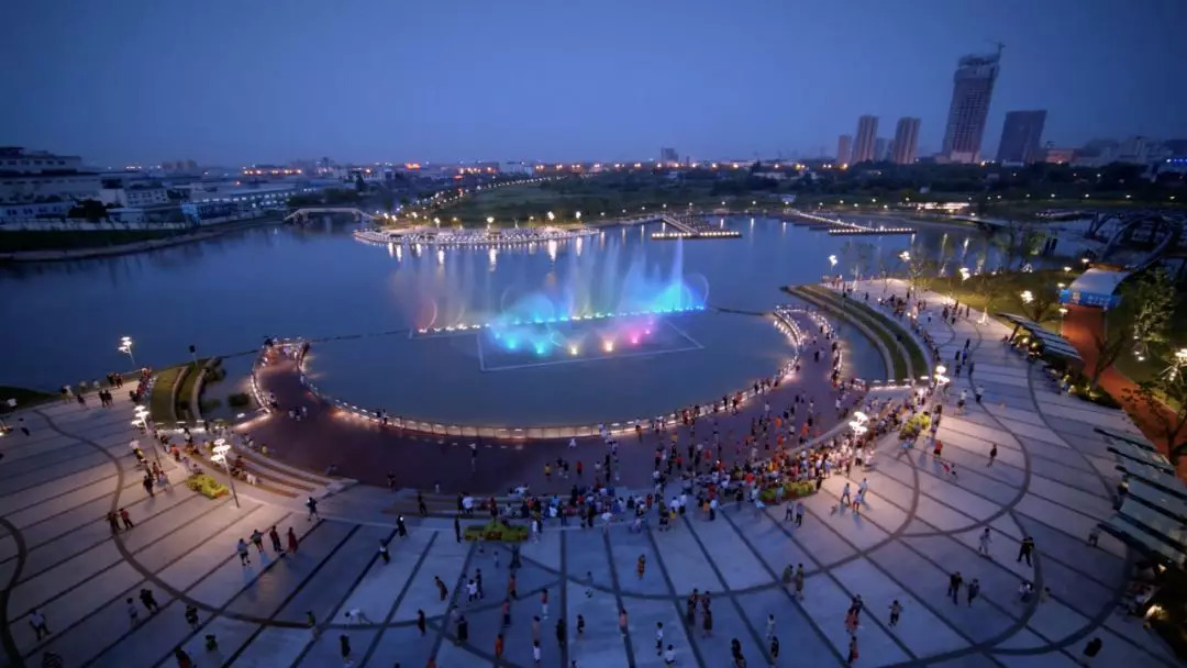 环城水系公园-上善广场。通过水域治理和周边环境的改善,结合休闲娱乐、运动健身、历史文化等元素,形成一条由淀浦河、油墩港、上达河和西大盈港等四条骨干河道组成的长达21公里的滨水廊道。其中上善广场音乐喷泉是青浦新城首个大型音乐喷泉。