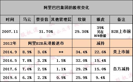 关于阿里巴巴股权的变化: