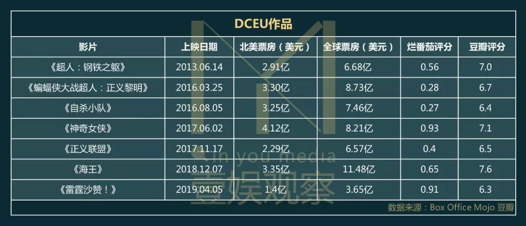 壹娱观察(ID:yiyuguancha)整理了,DCEU所有作品的数据。