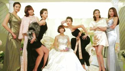 李冰冰想让让姚晨往中间站,结果却被张韶涵死死拉到了身旁。