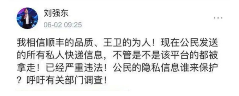 此时,顺丰因不愿提交用户的数据信息,跟阿里闹掰。