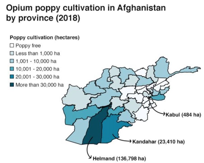 随着鸦片产业的繁荣发展,阿富汗重建特别监察长的报告指出,到2017年,鸦片罂粟已经成为阿富汗最重要的作物,创造了40亿到65亿美元的潜在出口,相当于阿富汗合法GDP的20%到32%。从鸦片产量推测,近年来,塔利班的年收入可超过10亿美元。