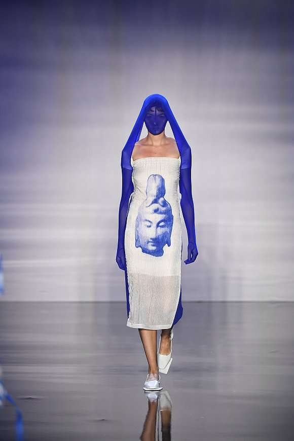 谭凤仪曾在一次采访中回忆过自己在英国读书时的经历,谈到在皇家艺术学院的第二年,系里换了一位有Fine Art背景的系主任,这使得她开始尝试解读时尚的其他路径,比如通过表演、短片、装置去表达时尚。