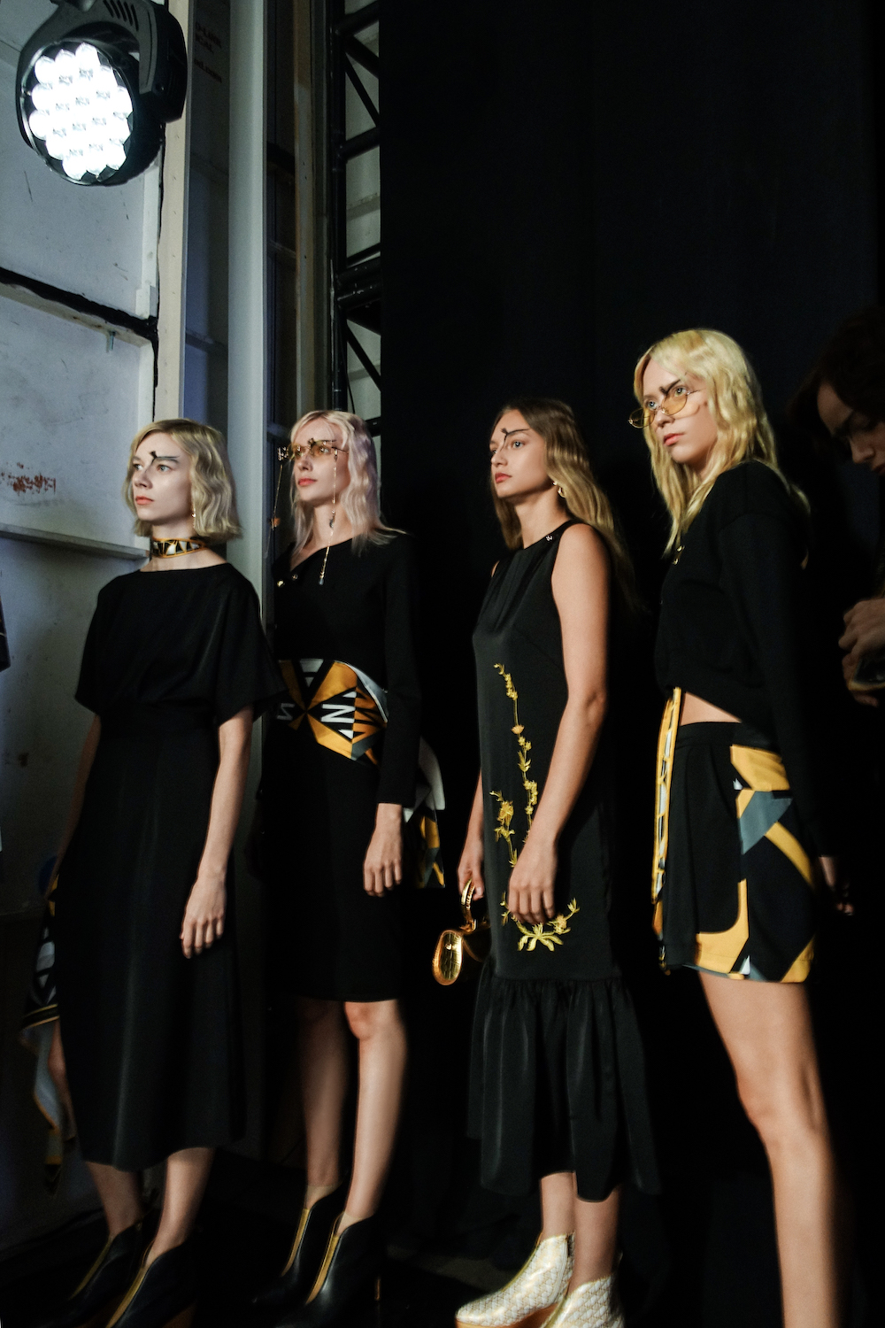 这场秀的主人是毕业于伦敦皇家艺术学院的中国设计师谭凤仪,她在旁静静看着这一切。事实上,这也是她第一次目睹自己的新作到底将会以什么方式得以呈现。还有两个多小时,她以“宋朝”为主题的2020春夏系列就将在此面世。为了烘托宋代简约雅致的美学传统,谭凤仪选择了一首没有旋律、只有鼓点的秀场音乐。