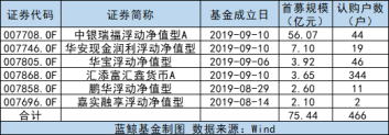 据wind数据显示,首批的6只浮动净值型货币基金共募集了75.44亿元,其中,渠道优势相对明显的中银瑞福为目前规模最大的一只,首募达56.07亿元,华安现金润利规模在7.1亿,其余4只规模均只有2-4亿的水平,相比于传统型货基的规模要低了不少。