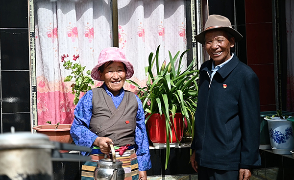 整理下院子,侍弄好花草,走出家门,打扫完门口的硬化路,44岁的山南市乃东区泽当镇金鲁社区村民顿珠次仁坐在了路边的树荫下。身后的门楣上,大红色的“十星级文明户”荣誉牌匾闪亮而醒目。