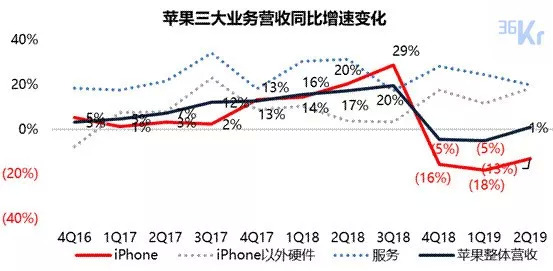 此前,iPhone的走势一直不错,但却在2018年第四季度遭遇滑铁卢,营收增速由29%大幅下降至-16%,如此大的反差究竟为何?