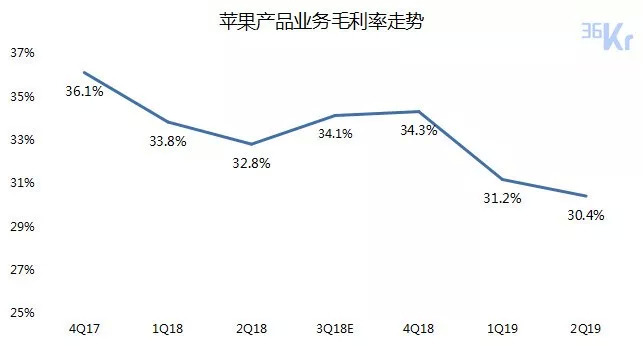 与iPhone定价连续上涨形成鲜明对比的是,苹果产品业务毛利率却在呈下滑趋势。这意味着定价的提高并没有给苹果赚来更多的钱。