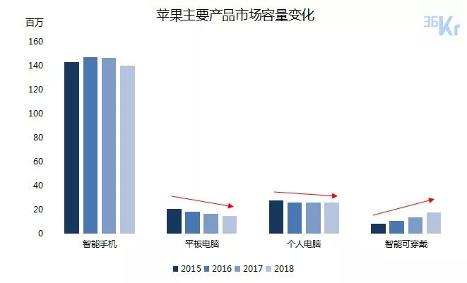 事实上,目前在iPhone以外的硬件增长中充当龙头的可穿戴、智能家居及配件(包括Apple Watch、AirPods、HomePod等)本身定位就更接近iOS生态的补充者,其中只有Apple Watch、HomePod可以成为用户信息处理中心并连接其他设备,而又能和iPhone、iPad、Mac一起成为现阶段苹果硬件主力的,就只剩Apple Watch。