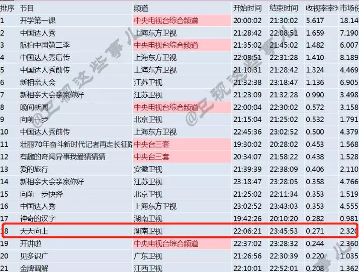这可真让我们老观众唏嘘。曾经,全盛时期的《天天向上》甚至能压《快乐大本营》一头,如今竟开始被粉丝嫌弃,只能靠明星绯闻获得姓名。