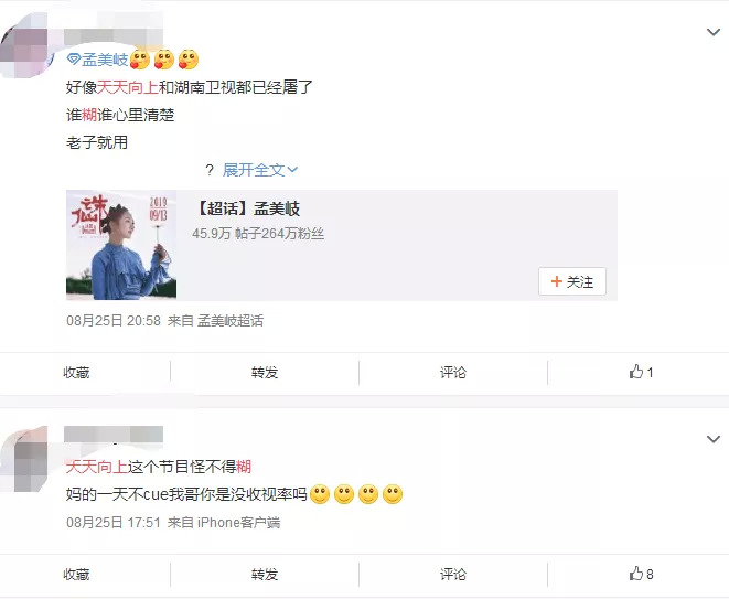 不久前,孟美岐粉丝更是暗自抱怨,为什么自家姐姐要去《天天向上》这个糊综艺,一定是被公司针对了。