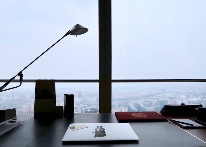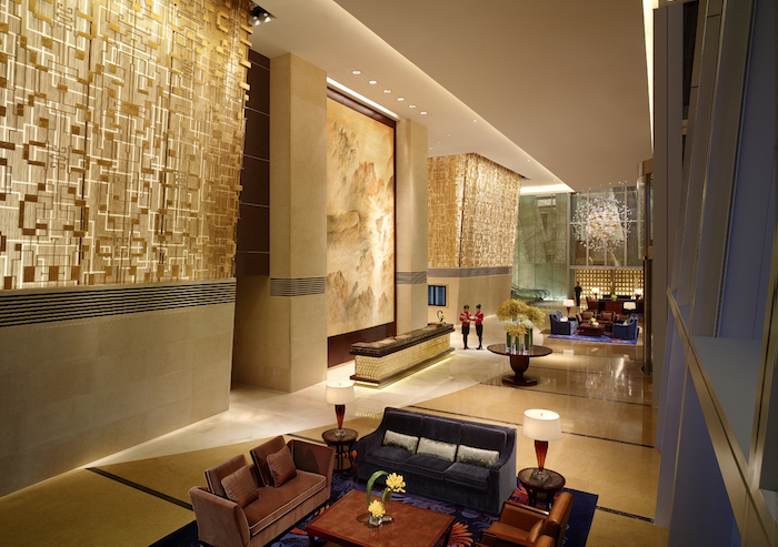 大堂位于64层,需要先搭乘电梯才能到达,大堂的设计风格富有现代中式感,但仔细观察也能感受出西方的视觉张力,算是比较巧妙的将两种视觉感受融为了一体。