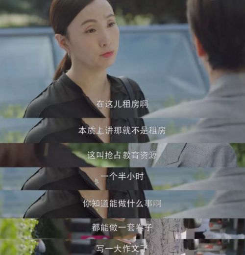 主角教授一家面对的情况是,如果进不了学区房,孩子就不能在理想的小学入学,接下来的人生可能都会受此影响。教授找到的那个学区房远远比不上“书香雅苑”的公寓体面舒适,那是个简陋的一室户,位于顶楼,一进门尘土飞扬,地板吱吱呀呀,全屋只有一个狭小的老虎天窗;而在中介口中,这个房子再合适不过,在市场上极其抢手,需要在72小时内完成交易。教授还没来得及卖房子,就已经签下了学区房的购房合同。