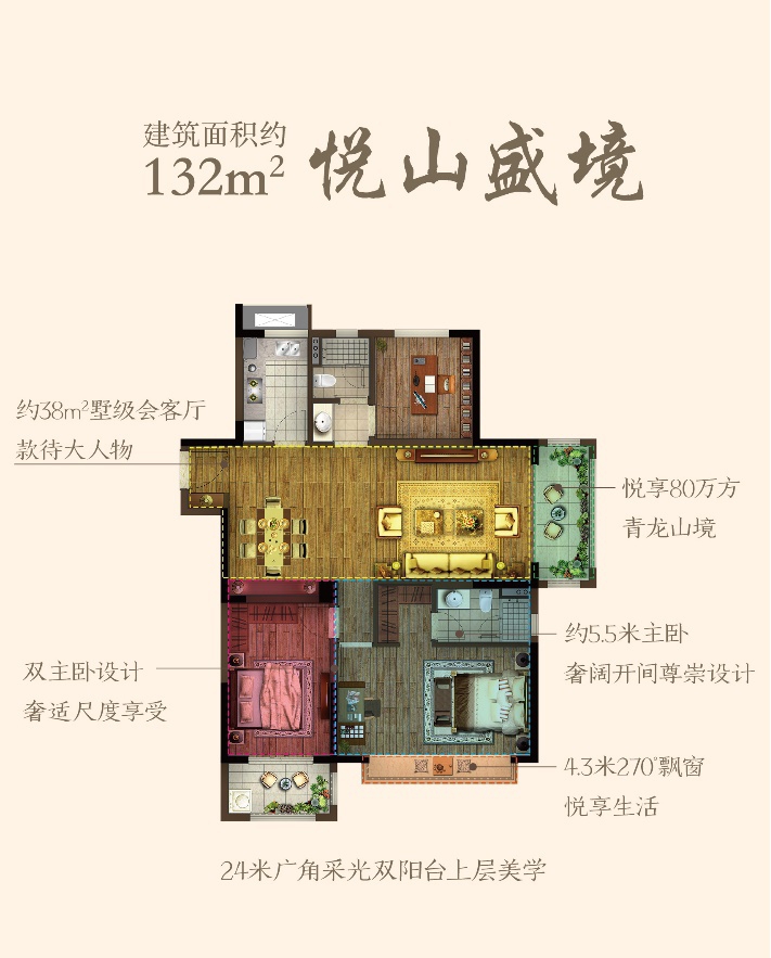而在此之上,江宁金茂悦·云筑又在产品上进行了升级。是规划青龙山稀缺的,初次亮相的132㎡ 改善房源。可以说132㎡户型是江宁金茂悦·云筑对青龙山改善客群的致敬,不仅对于产品,也是基于客户。