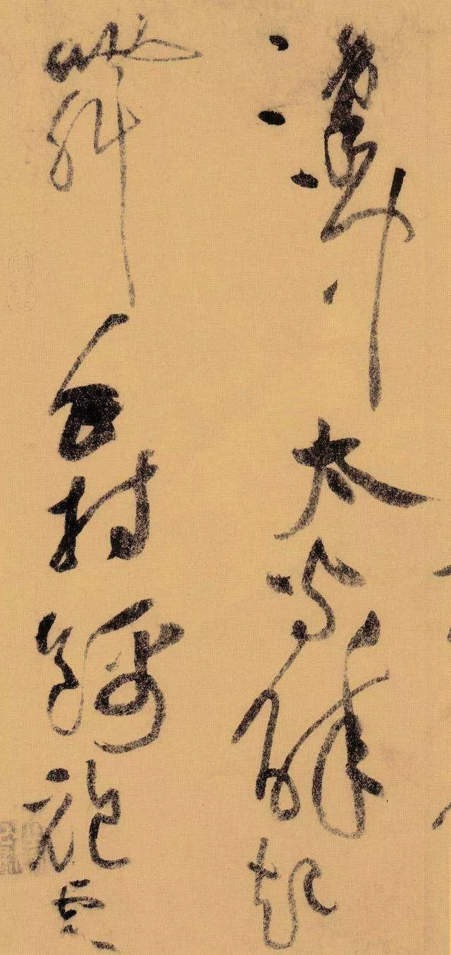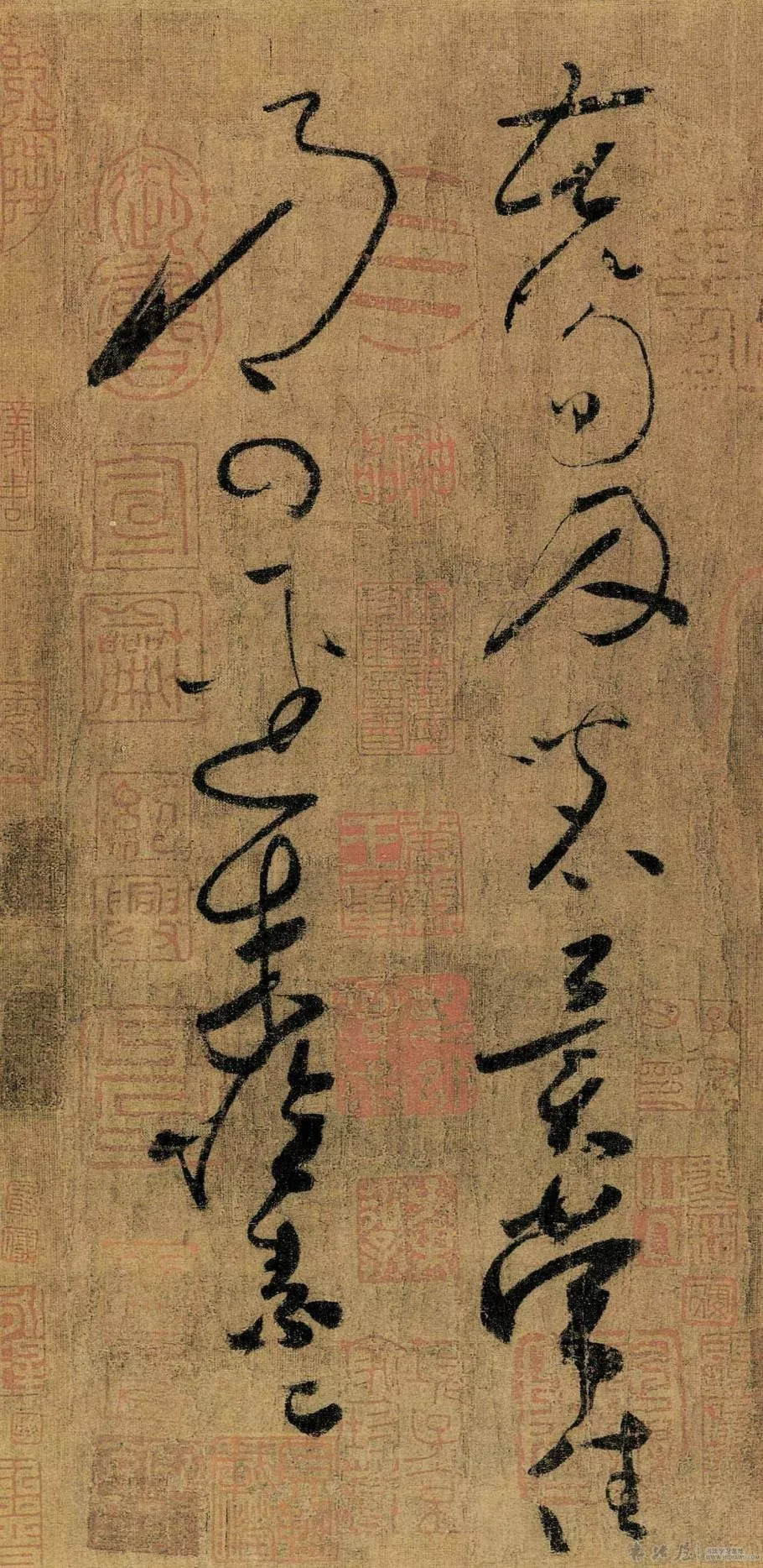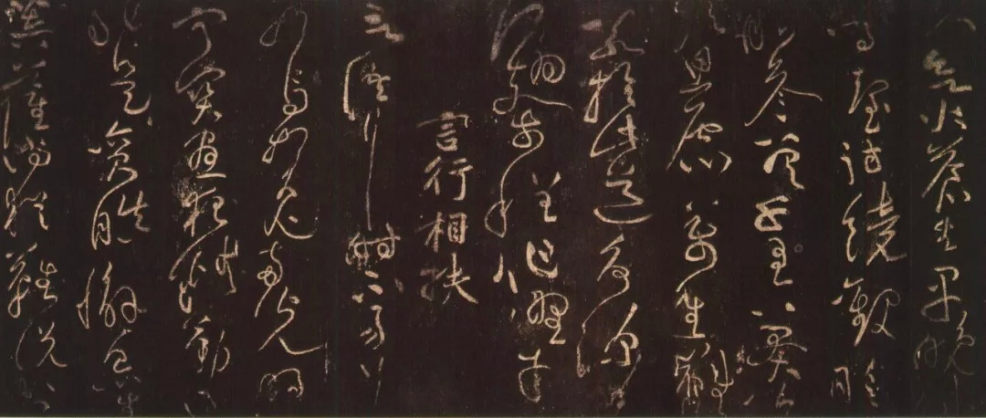 张旭的草书有一种“狂逸”的表现张力,目光所及之处,一片恢弘大气之象,在继承了张芝和二王草书的基础上又有所发展,以中锋运笔为主,纵展字势,连贯地组织整篇的行气,巧妙和谐地处理了草书中形、气、韵三者的关系,将草书特有的艺术美开拓到一个崭新的境界。